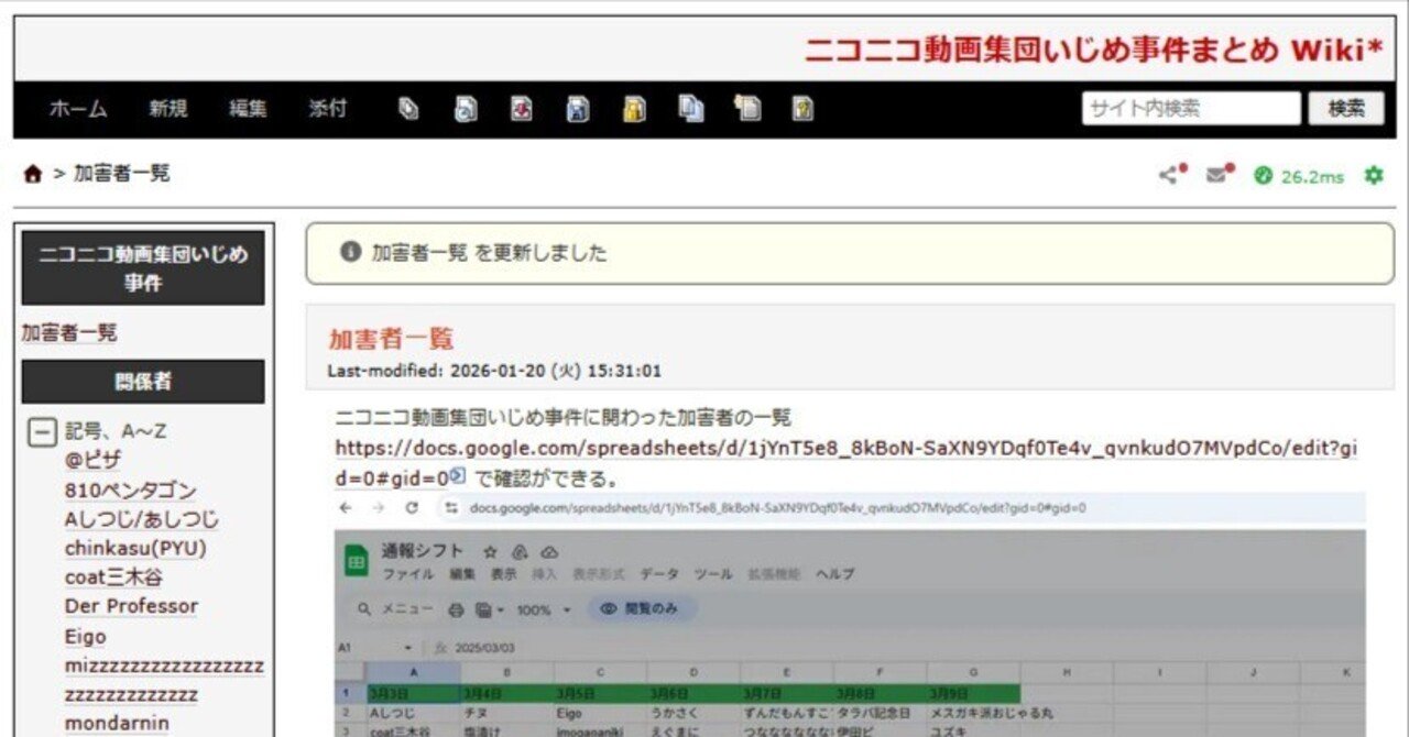 ニコニコ動画集団いじめ事件まとめ Wiki 左メニュー 復元